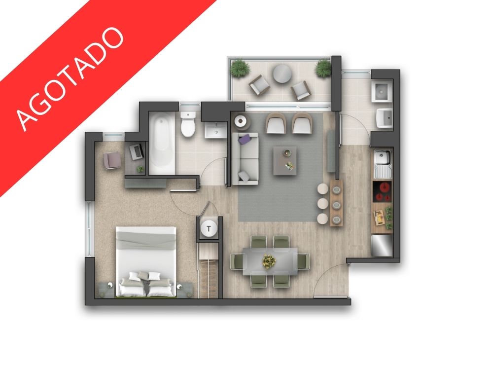 El Modelo Aromo es ideal para quienes buscan un espacio cómodo, funcional y moderno. Con 42,65 metros cuadrados, este departamento de 1 dormitorio y 1 baño es perfecto para solteros, parejas o personas que buscan un primer hogar en un ambiente acogedor y bien distribuido.