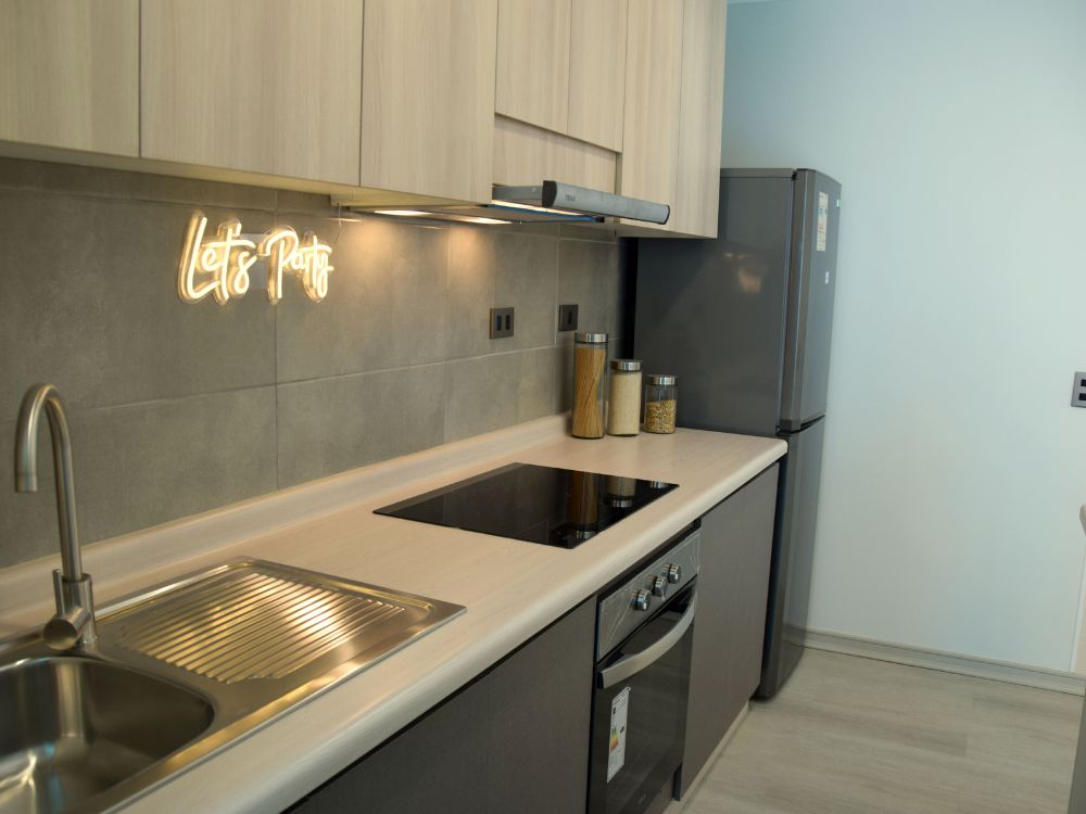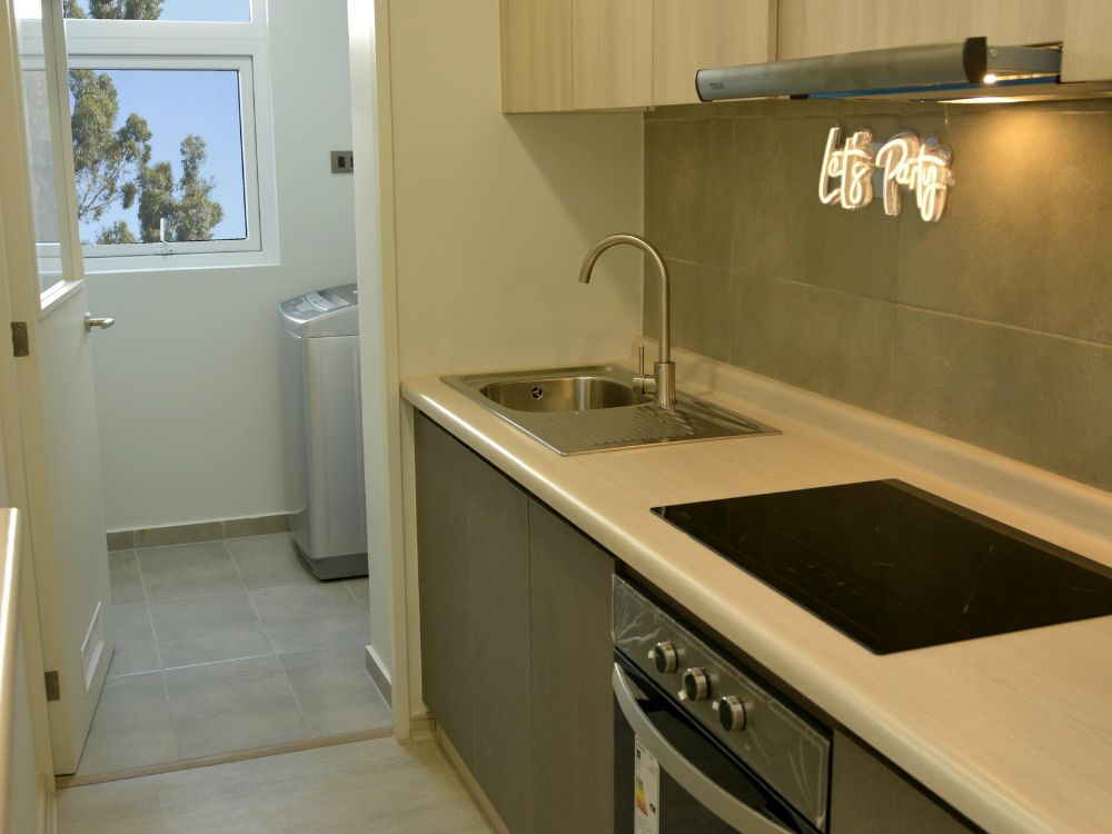 Este departamento, 100% eléctrico, ofrece una excelente eficiencia energética, con una cocina equipada con encimera vitrocerámica y horno eléctrico, además de campana y un lavaplatos de acero inoxidable, brindando un espacio moderno y funcional para tus necesidades culinarias. El piso vinílico flotante en el estar-comedor, cocina y pasillo, asegura durabilidad y estilo. La loggia incluye lavadero, mientras que los clósets conformados y el termo eléctrico completan este espacio pensado para la comodidad.