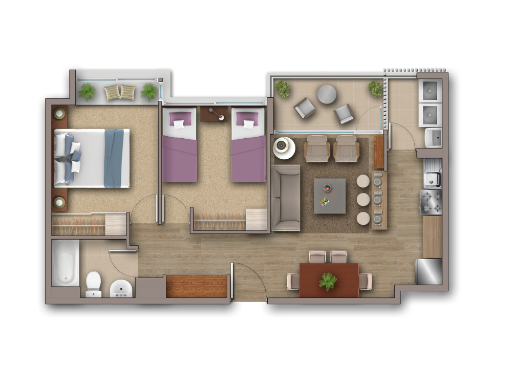 El Modelo Limarí está diseñado para quienes buscan un espacio acogedor y funcional sin sacrificar comodidad. Con una superficie de 50,32 metros cuadrados, este departamento cuenta con 2 dormitorios ideales para parejas, pequeñas familias o quienes buscan una distribución práctica y eficiente. El baño está estratégicamente ubicado para brindar accesibilidad desde cualquier área del hogar.